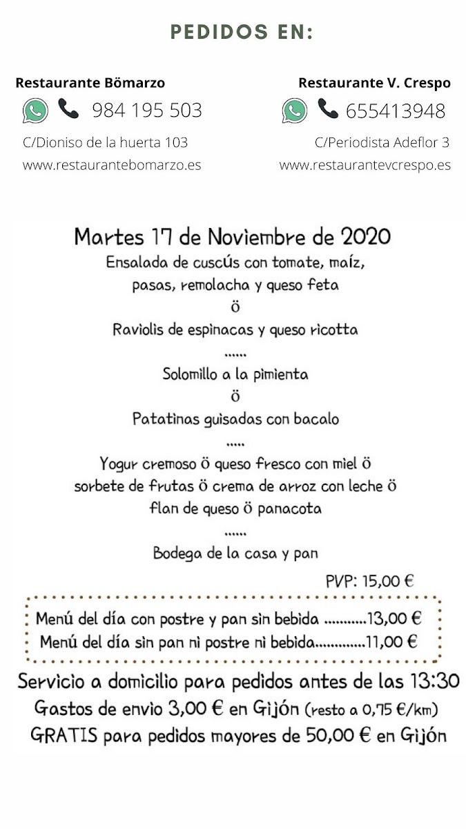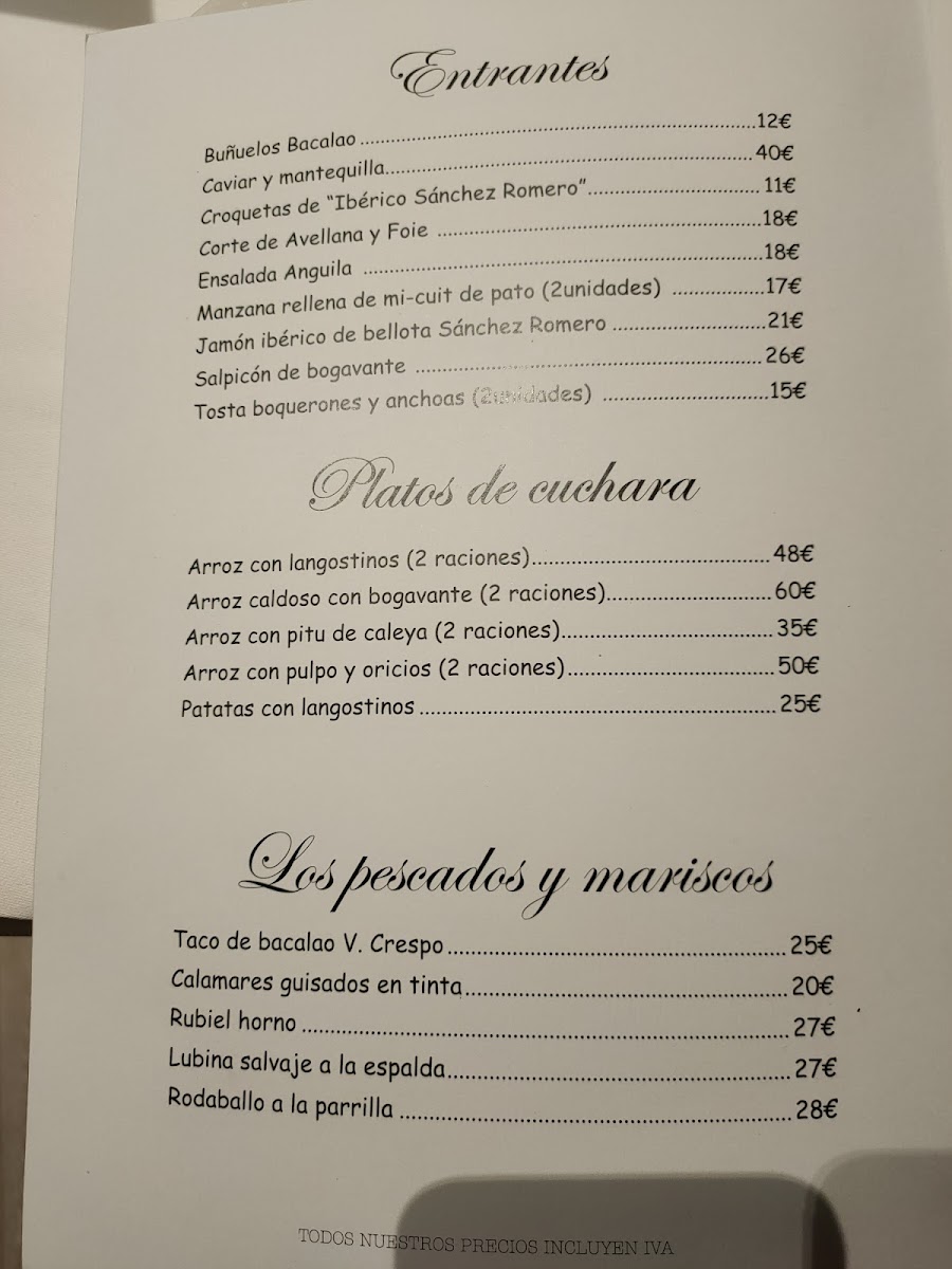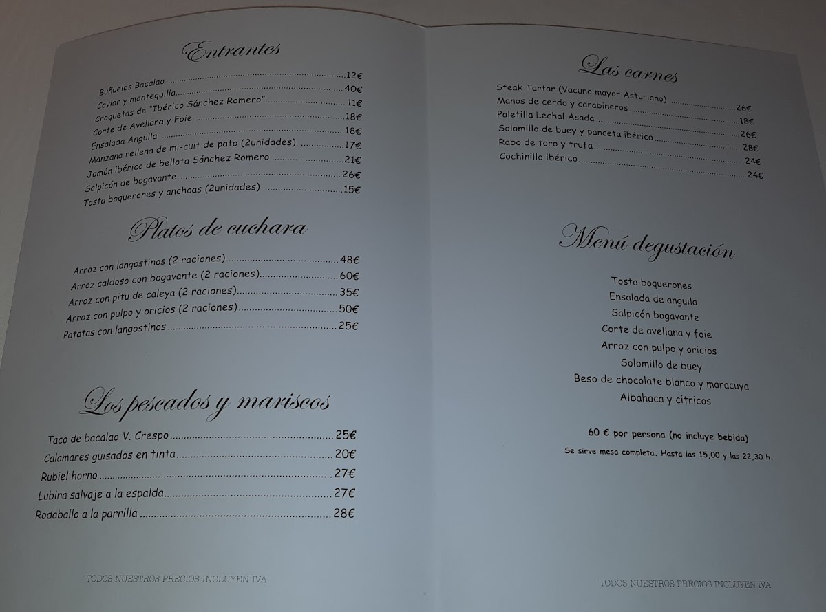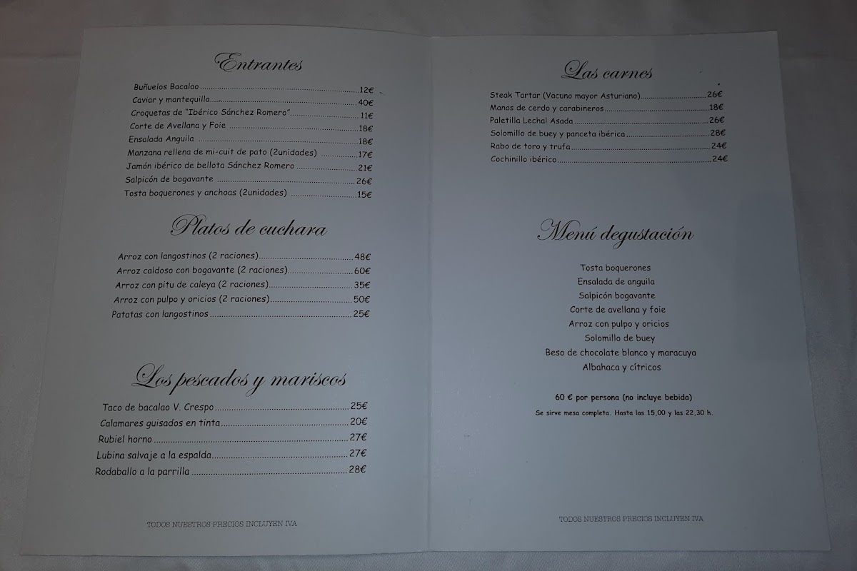 Introducing the Menu at Restaurante V. Crespo